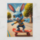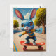 Carte Postale Drôle adorable Skateboard Cute Rabbit
