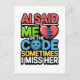 Un design IA plein d’esprit avec la citation "AI dit que c’est moi ou le code, parfois elle me manque". Parfait pour les programmeurs, les codeurs et les passionnés d'IA qui aiment l'humour technologique. Idéal pour montrer votre passion pour le codage, l'intelligence artificielle et la culture geek amusante.