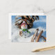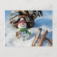 Carte Postale Drôle bonhomme de neige manger des friandises