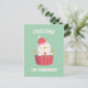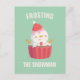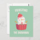 Un accueil de Noël amusant qui dit "Frosting the snowman"! Il est jumelé à une illustration d'un mignon bonhomme de neige avec chapeau de Père Noël dégivrant, des arroses et des biscuits bras. Design adorable qui mettra un sourire sur le visage du destinataire.