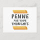 Blagues de pâtes, penne puns, nourriture drôle. Que pensez-vous ? Penne pour vos pensées