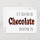 Cette drôle de carte postale les gardera souriants avec son design unique. Les mots disent, "Si ça implique du chocolat, je suis dans".