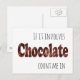 Cette carte postale drôle les fera sourire grâce à son design unique. Les mots disent : "Si cela implique du chocolat, j'suis dedans".