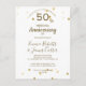 Célébrez 50 ans d'amour avec cette invitation anniversaire de mariage de carte postale dorée. Avec des cœurs d'amour dorés en confettis, une écriture moderne élégante et un design doré et blanc épuré—parfait pour renouveler vos vœux ou célébrer un anniversaire de mariage classique.