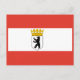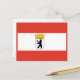 Carte postale avec variante du drapeau de Berlin, drapeau de l'État avec bandes horizontales rouges et blanches, avec une illustration d'un ours noir à l'intérieur d'un bouclier avec une couronne