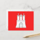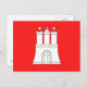 Carte postale avec le drapeau de Hambourg, drapeau rouge avec illustration d'un château blanc à trois tours