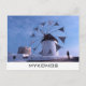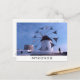 Un homme admire l'un des fameux moulins à vent de la charmante île de Mykonos, Grèce