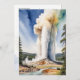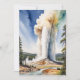 Cette carte postale présente une aquarelle du geyser Old Faithful dans le parc national de Yellowstone.
