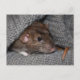 Reggie le Rat Dumbo Brown et blanc qui sort d'un pull - Une carte postale mignonne pour les amateurs de rat!
