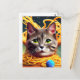 Carte postale d'un chat drôle mangeant des spaghet