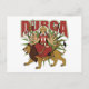 La déesse Durga est la mère de l'univers et est considérée comme la puissance derrière l'oeuvre de création, de préservation et de destruction du monde. Depuis des temps immémoriaux, elle est vénérée comme la puissance suprême de l'Être suprême et a été mentionnée dans de nombreuses Écritures - Yajur Veda, Vajasaneyi Samhita et Taittareya Brahman. La forme de Durga est aveuglément brillante, comme une déesse rayonnante (devi), avec dix mains puissantes, cheveux luxuriants avec de belles boucles, une lueur rouge-or de sa peau. Ses ornements