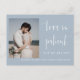Cette carte postale d'invitation à la faire-part mariage présente une calligraphie élégante et une police de typographie sans serif simple avec une photo sur un arrière - plan bleu poussiéreux pour un look épuré minimaliste et moderne, ce qui est une belle façon d'informer sur votre mariage à venir. La simplicité de ce design ajoute une touche d'élégance à vos cartes faire-part mariages. Il fonctionne bien avec de nombreux thèmes mariages et certainement un grand ajout à votre mariage. Il suffit de customiser les noms et le libellé en quelques étapes simples et personnalisez la carte postale de l'invitation avec votre photo du couple heureux pour donner une touche personnelle à votre carte postale. Veuillez noter : La calligraphie élégante de l'expression "L'amour est patient mais nous ne le sommes pas" et "rien de fantaisie juste l'amour" avec les lignes et d'autres illustrations graphiques et éléments ne peuvent pas être modifiés, supprimés, ou déplacés. Elles sont réparées.