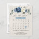 Calendrier floral bleu Dusty enregistrer la carte postale date avec élégant bouquet de bleu marine, bleu royal, blanc, or, ivoire de champagne, rose couleur rousse, bourgeons floraux ranunculus et sauge vert eucalyptus feuilles et élégant bouquet aquarelle. Veuillez me contacter pour toute aide sur la personnalisation ou si vous avez besoin d'un autre produit avec ce design.