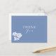 Cartes de remerciement bleu et blanc élégantes et chic. Ces jolies cartes, présentent une illustration aquarelle florale blanche, un cadre de bordure délicat et un ensemble de polices contemporaines, sur un fond élégant bleu poussiéreux à l'avant et blanc à l'arrière.