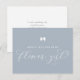 Demandez à votre famille et à vos amis de faire partie de votre mariage avec cette carte personnalisée "Serez-vous ma fille aux fleurs". Il comporte un joli arc, un script fantaisiste et un arrière - plan bleu poussiéreux. Personnalisez en ajoutant un nom et un message.