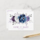 Elégant mariage à thème bleu Dusty / marine enregistrer la carte postale date avec l'élégant bouquet de bleu Dusty, marine, ardoise des bourgeons de fleurs roses et bleu eucalyptus feuilles. Veuillez me contacter pour toute aide sur la personnalisation ou si vous avez besoin d'un autre produit avec ce design.