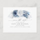 Carte Postale Dusty et Navy Blue Floral Boho Enregistrer la date