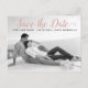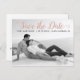 Mariage de script rose moderne poussiéreux Enregistrer la carte postale de la photo Date. Cette typographie contemporaine Save the Date design comprend une photo en noir et blanc du couple et le texte "Save the Date" dans une police de caractères de script moderne.