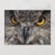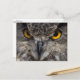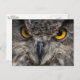 Les yeux jaunes percevants d'un hibou aigle brillent menaçamment au spectateur.