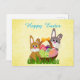 This cute holiday card features a basket full of painted eggs and two Easter bunnies. Personalize the greeting with your own words or buy as shown with "Happy Easter" Use this card to send to a child or for children to hand out to their friends.