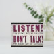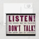 Écoute ! Ne parle pas Grande qualité, restauré Écouter! Ne parlez pas de l'affiche de la 2 guerre mondiale. 2ÈME GUERRE MONDIALEPoster store a ceci et des centaines d'affiches 2ème guerre mondiale, des tasses, des timbres 2ème guerre mondiale et d'autres souvenirs. Revivez et chérissez l'histoire américaine. Ceci et beaucoup d'autres produits avec Listen! Ne parlez pas dans notre collection.