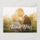 Cartes postales de remerciement de mariage avec écriture calligraphique et photo personnalisée. Mettez en avant votre photo de mariage ou de lune de miel sur cette carte postale personnalisée. Ajoutez simplement vos détails. Vous pouvez personnaliser ce design pour d'autres événements également. conçu par superdazzle.com