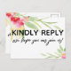 Les deux côtés de cette jolie carte ont été ornés de sprays de fleurs colorées d'aquarelle. Dans le texte modifiable "gentiment répondre" a été placé, grand et gras, sur le devant. Dans une écriture décontractée moderne, un graphique représentant "Nous espérons que vous pouvez vous joindre à nous !" apparaît ci-dessous. Au verso, la même police unique a été utilisée pour créer des graphiques qui lisent "rsvp", "m" et "gentiment livrer à :" et tout autre texte est modifiable. Utilisez les champs modèle pour personnaliser autant que vous le souhaitez. L'arrière - plan peut être changé en n'importe quelle couleur. // 100 //