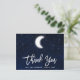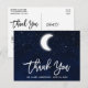 Carte de remerciement de mariage moderne en écriture pinceau, ciel nocturne bleu aquarelle avec étoiles et lune.