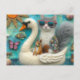 Carte Postale Écureuil et chat sur le cygne en laine flottant am
