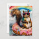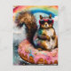 Un drôle d'écureuil sur un beignet vitré flottant avec un arc-en-ciel AI produit de l'art fait pour ressembler à un collage encaustique à l'aide de mon propre modèle LORA spécialement formé sur des beignets et de mignonnes bêtes sur des sorties en flottaison.