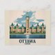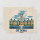 Profitez du charme de la capitale du Canada avec cette carte postale de voyage d’Ottawa magnifiquement illustrée. Doté de l'emblématique Colline du Parlement, sous un ciel ensoleillé, ce design mêle architecture historique et flair artistique. Parfait pour envoyer un message d'accueil, recueillir des souvenirs de voyage ou donner aux amoureux du Canada. Ajoutez un élégant morceau de patrimoine canadien à votre collection de cartes postales avec cette représentation élégante et colorée d'Ottawa.
