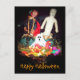 Cette carte postale éffrayante présente un design d'Halloween amusant de maman, fantôme, et tour ou gâter des bonbons. Une carte postale comme celle-ci serait bien d'envoyer à vos petits-enfants avec eux un Halloween heureux.