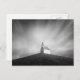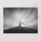 Carte postale photo d'une petite église ou chapelle sur une colline sous des nuages bouclés dans le ciel en noir et blanc créant une image conceptuelle très forte de garder la foi dans les temps difficiles.