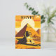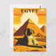 Une carte postale vintage audacieuse d'Egypte représentant le Grand Sphinx et les pyramides sur fond de coucher de soleil désertique lumineux. Un objet de collection parfait pour les voyageurs, les amateurs d'histoire et les passionnés d'Egypte.
