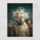 Un charmant bulldog français habillé en scientifique décalé, avec des cheveux blancs sauvages et un manteau de laboratoire, posé devant un tableau noir rempli d'équations. Le mélange parfait de mignon et intelligent, idéal pour les amoureux des animaux de compagnie et les amateurs de science.
