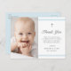 La carte de remerciements de baptême à rayures classiques est une carte postale moderne et propre avec des rayures bleues douces et une croix avec photo sur le devant. Le dos est une carte postale. Type personnalisable gris vous permet de modifier toutes les informations de la carte à votre goût. Parfait pour le baptême d'un petit garçon.
