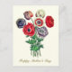 Illustration botanique vintage d'Anemone coronaria, l'anémone du pavot, le marigold espagnol, ou fleur de vent, une plante vivace originaire de la Méditerranée, de la Syrie, du Sinaï et de l'Afrique du Nord. Ils symbolisent l'anticipation et l'amour débordant, la loyauté et la fragilité de la vie. Chaque couleur possède également un symbolisme unique : blanc pour la sincérité, rouge/rose pour l'amour abandonné, violet/bleu pour la protection.