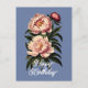 Carte Postale Élégant Anniversaire Fleur Rose Pivoine Vintage