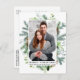 Elégant Aquarelle Pine Frame Joyeux Noël Couple Photo Holiday Green Carte postale