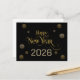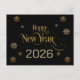 Carte Postale Élégant Black Gold Joyeux Nouvel An 2026 flocons d