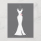 Carte postale avec un arrière - plan gris classe. Conçu avec une élégante robe blanche accrochée à un cintre. Design minimaliste simple.