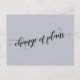 Cette carte simple vous permet de choisir la couleur de votre arrière - plan (si vous voulez changer !) tout en appréciant cette police magnifique. Sur le devant, on peut lire "changement de plan" en utilisant un joli script avec des tourbillons et des vagues. L'arrière comprend des espaces réservés modèles pour vos détails avec des mots d'accents correspondant avec la police de calligraphie. Utilisez ces champs modèles pour ajouter vos données personnelles et modifier mon libellé provisoire en fonction de vos besoins et de votre situation. // 99 //