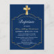 Carte Postale Elégant Blue Golden Cross Garys Baptism Invitation