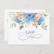 Carte Postale Elégant Blue Hydrangea Blush Roses mariage RSVP