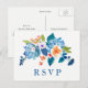 Carte Postale Elégant Blue Peach Floral Wedding RSVP Invitation