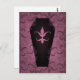 Une carte postale avec un élégant cercueil gothique noir avec un motif arrière - plan mauve grungy et damassé.