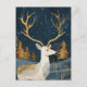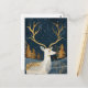 Carte Postale Elégant Cerf Marine Bleu & Or Aquarelle Cosy Noël