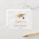 Élégant chapeau doré avec carte de remerciement de diplôme personnalisée avec un gland violet. Modifiez facilement le nom du diplômé et l'année en utilisant le menu de personnalisation de ce modèle. Créez la carte de remerciement de diplôme personnalisée parfaite.