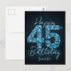 Carte Postale Élégant Chic Bleu Saphir et Noir 45e Anniversaire