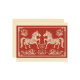 Inspired by the intricate artistry of Chinese paper-cutting, this design features two majestic, mirrored horses adorned with delicate floral patterns and geometric details. Set against a rich, textured red background, the gold-toned illustrations symbolize doubled prosperity and strength for the coming year.